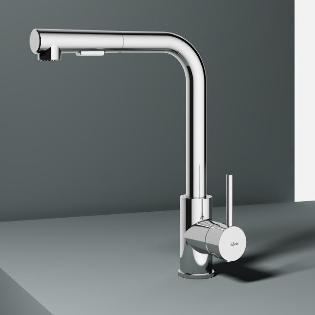 수전의 헤드가 호스처럼 잡아당겨지는 구조를 갖고 있으며 싱크대 외부까지 물을 뿌릴 수 있어 다목적으로 사용할 수 있습니다